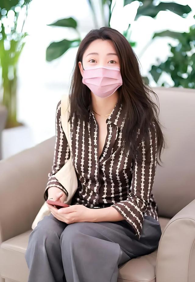 殷桃这套机场造型中,细竖条纹衬衫看似简单实则非常时髦,细密的竖条纹自带纵向拉伸效果,能够在视觉上收窄肩宽、修饰腰腹,宽松的版型不贴肉,还可以藏住手臂赘肉与腰腹小肚腩,对微胖、梨形、苹果形身材都十分友好。她将领口解开几颗纽扣,拉长了肩颈线条,袖口自然垂落,弱化了衬衫的正式感,增添了随性慵懒的氛围,减龄效果立竿见影。