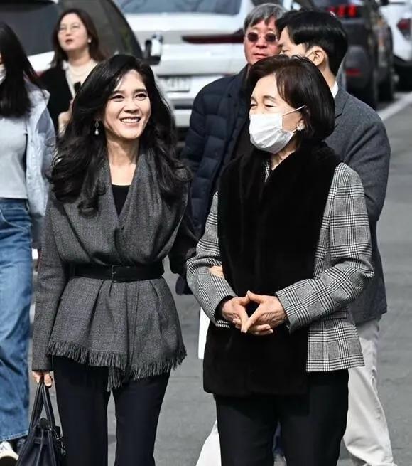 洪罗喜已经81岁了,但是保养超级年轻,一头黑发,打扮优雅,标准的贵妇人形象,看着和女儿李富真简直是同龄人。